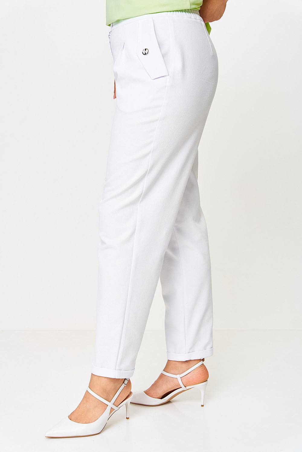 Промеры на примере 48 размера: ОТ 78 см, ОБ 106 см. Длина брюк по боковому шву с поясом – 101 ± 1см