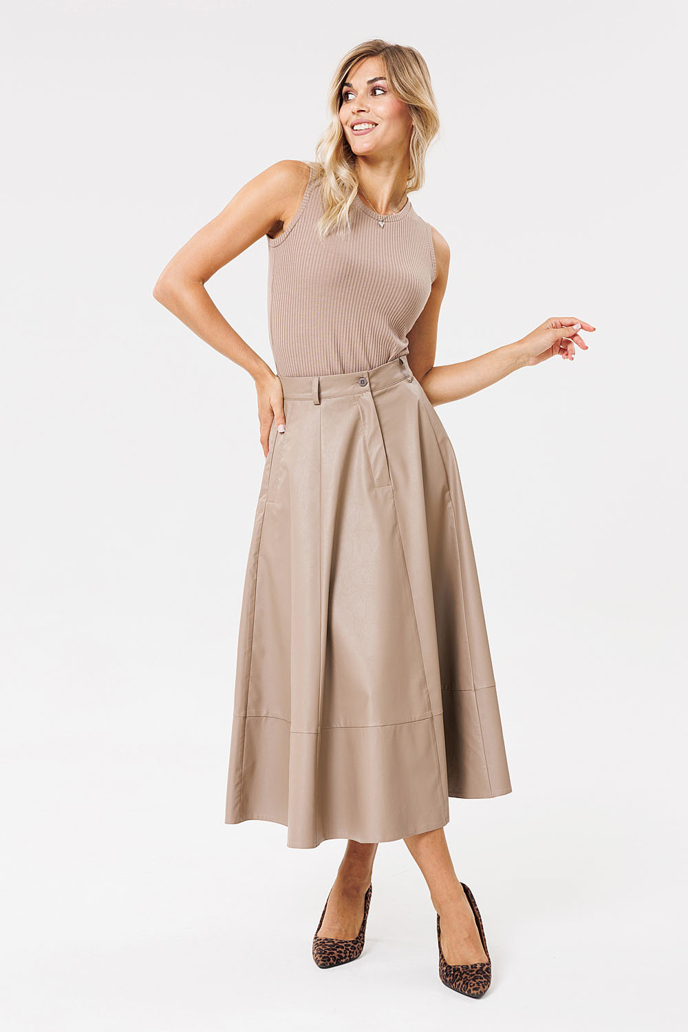 Промеры на примере 42 р.: Длина изделия по спинке 55 см. ОГ – 80 см (ткань эластичная). Ширина по низу 88 см.