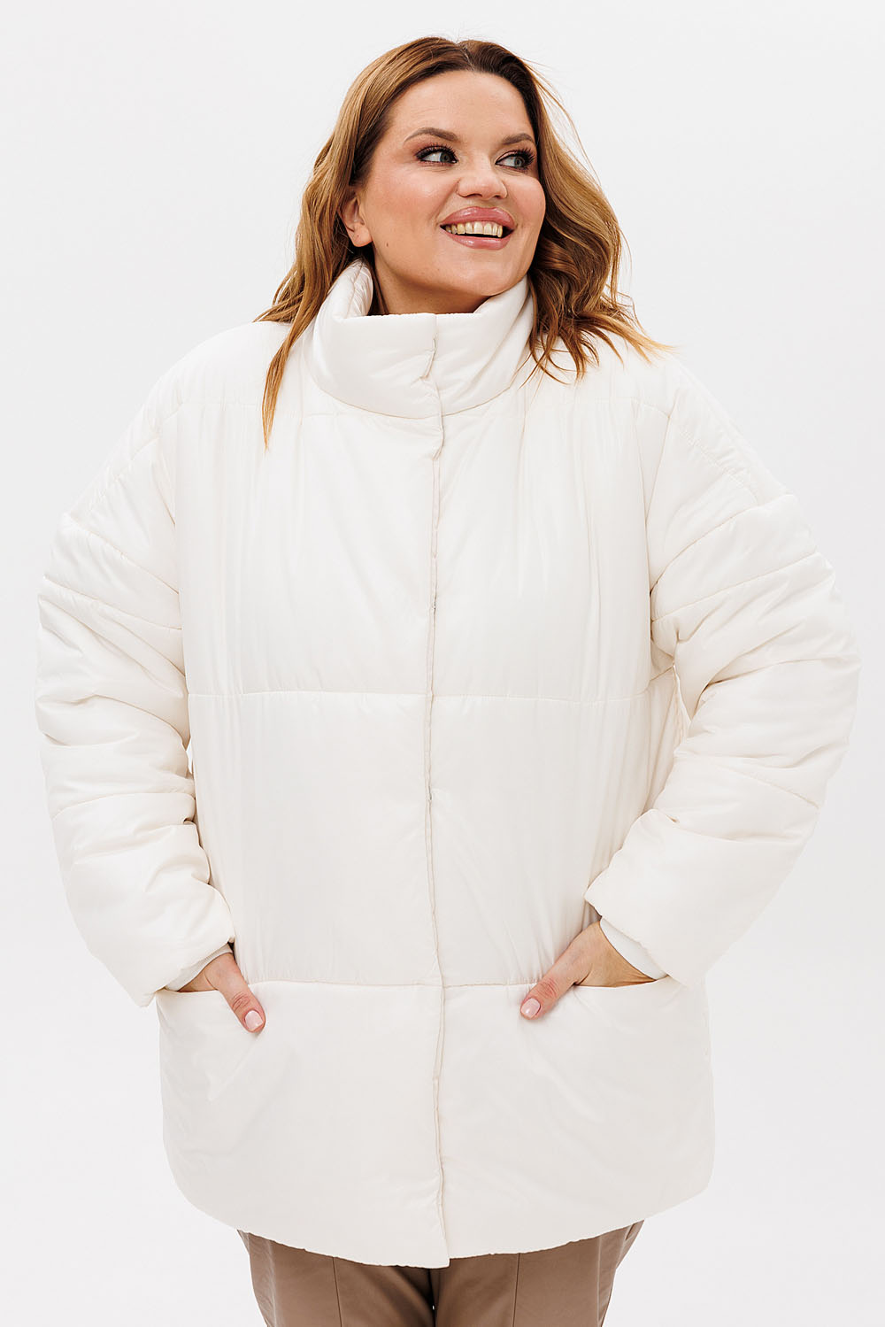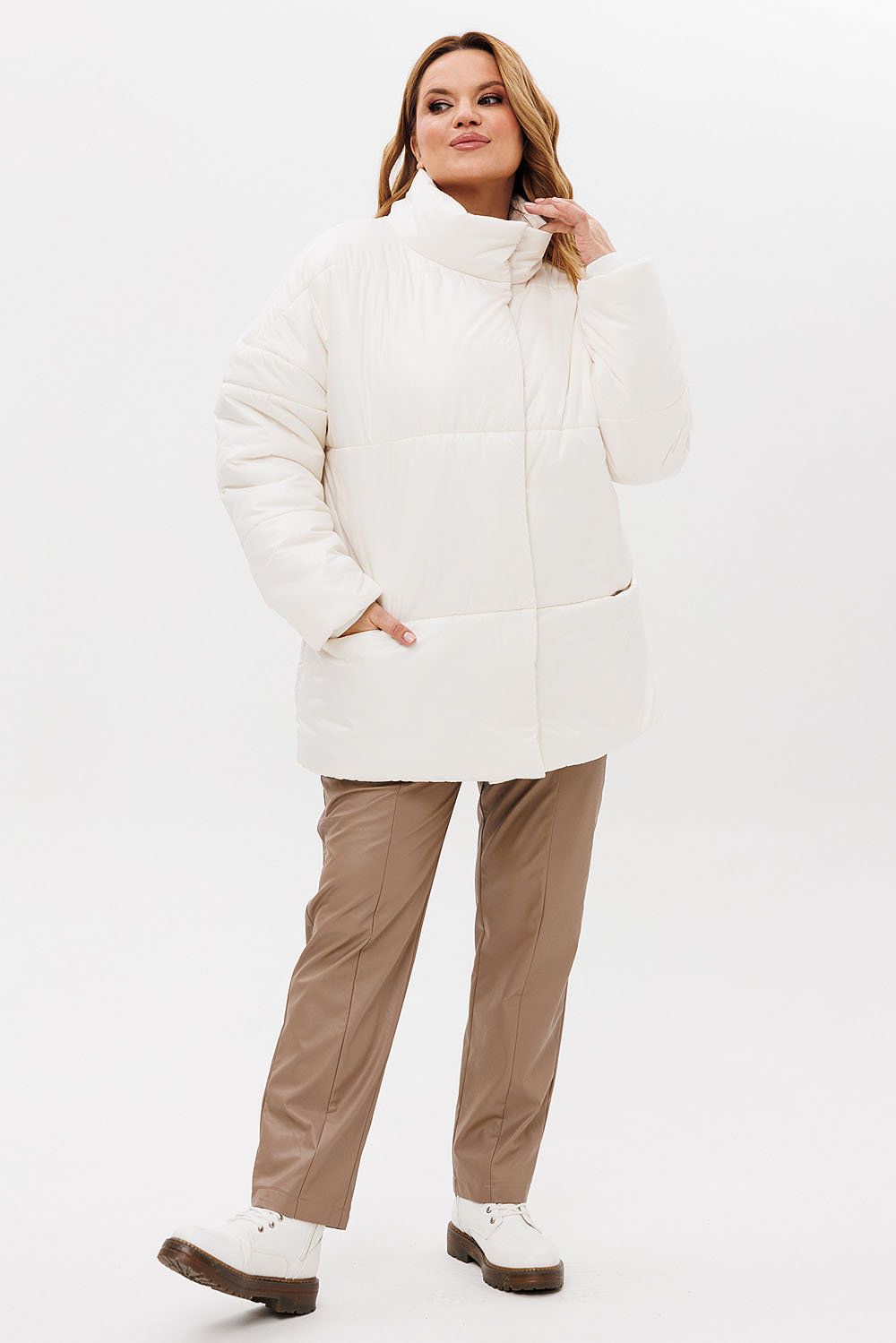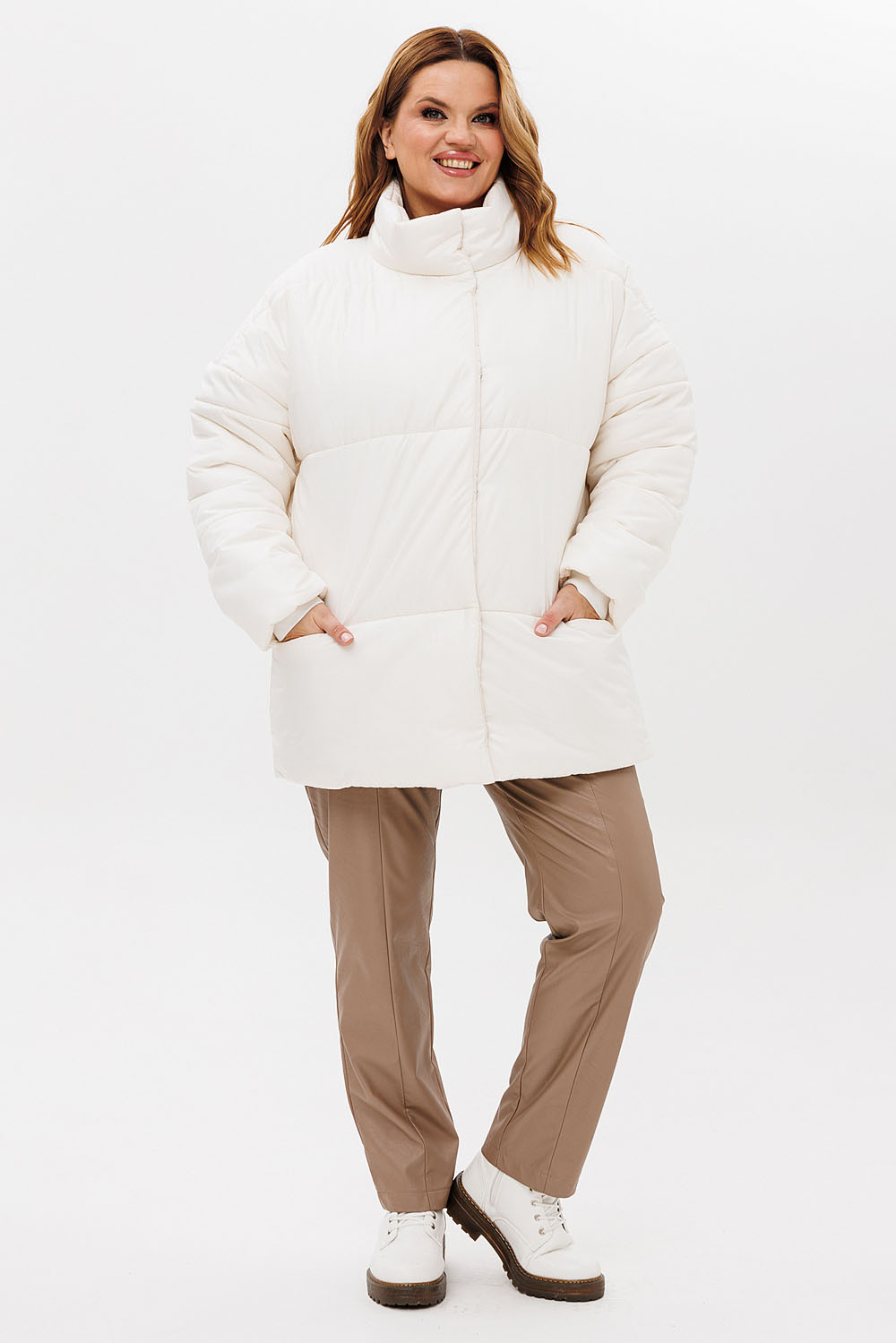 Куртка женская из текстильной ткани прямого силуэта на утеплителе ISOSOFT (200 г/м2, Бельгия). По переду в швах расположены карманы. Спущенное плечо. Рукав одношовный с манжетой из довяза. Горловина оформлена стойкой. Куртка застегивается на потайные кнопки.
