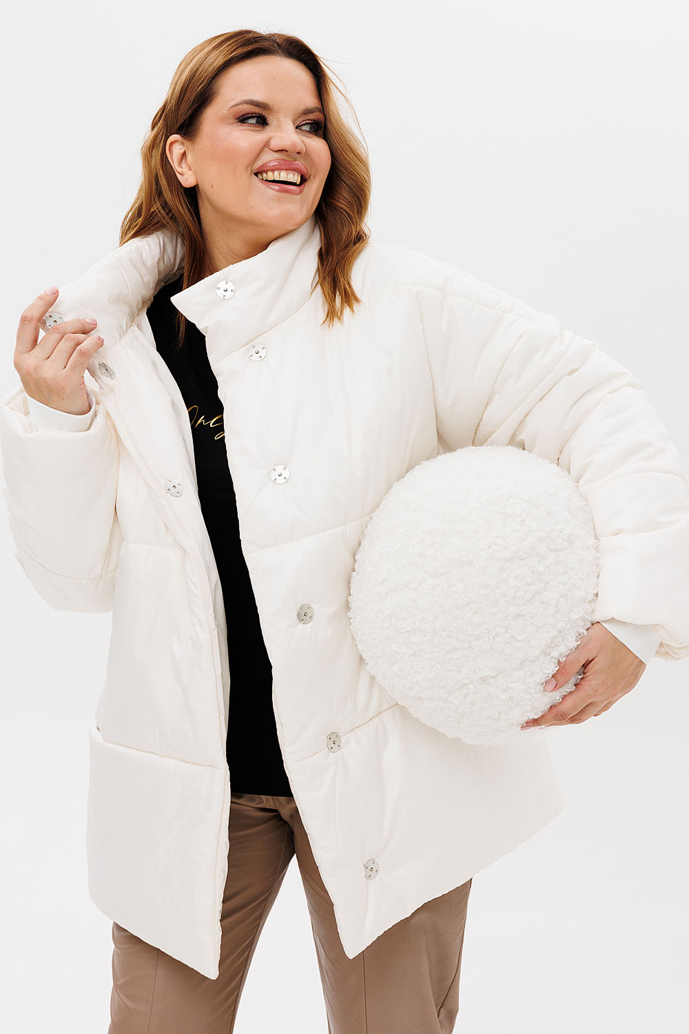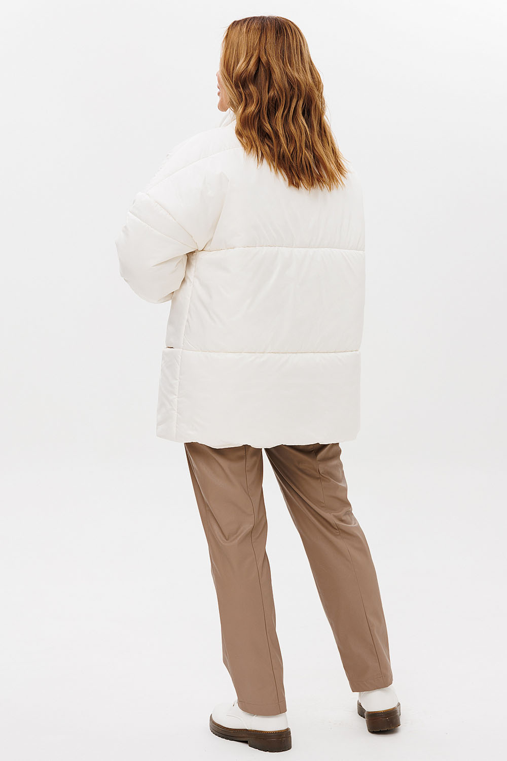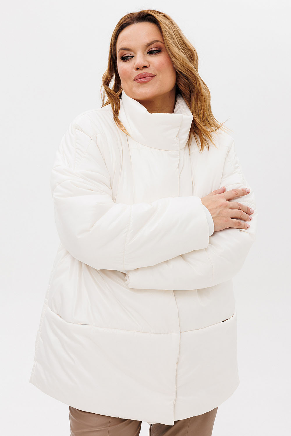 Куртка женская из текстильной ткани прямого силуэта на утеплителе ISOSOFT (200 г/м2, Бельгия). По переду в швах расположены карманы. Спущенное плечо. Рукав одношовный с манжетой из довяза. Горловина оформлена стойкой. Куртка застегивается на потайные кнопки.