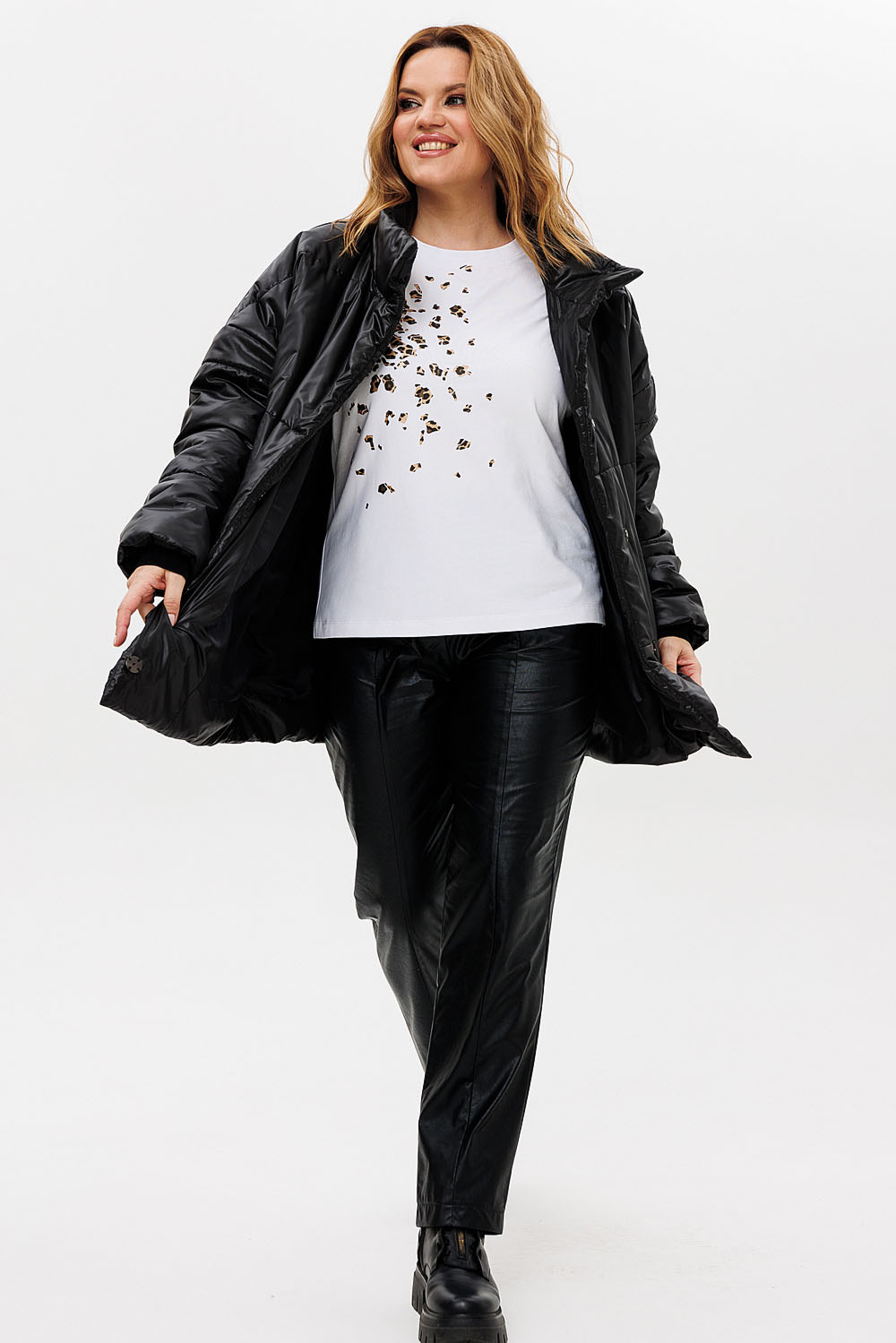 Куртка женская из текстильной ткани прямого силуэта на утеплителе ISOSOFT (200 г/м2, Бельгия). По переду в швах расположены карманы. Спущенное плечо. Рукав одношовный с манжетой из довяза. Горловина оформлена стойкой. Куртка застегивается на потайные кнопки.