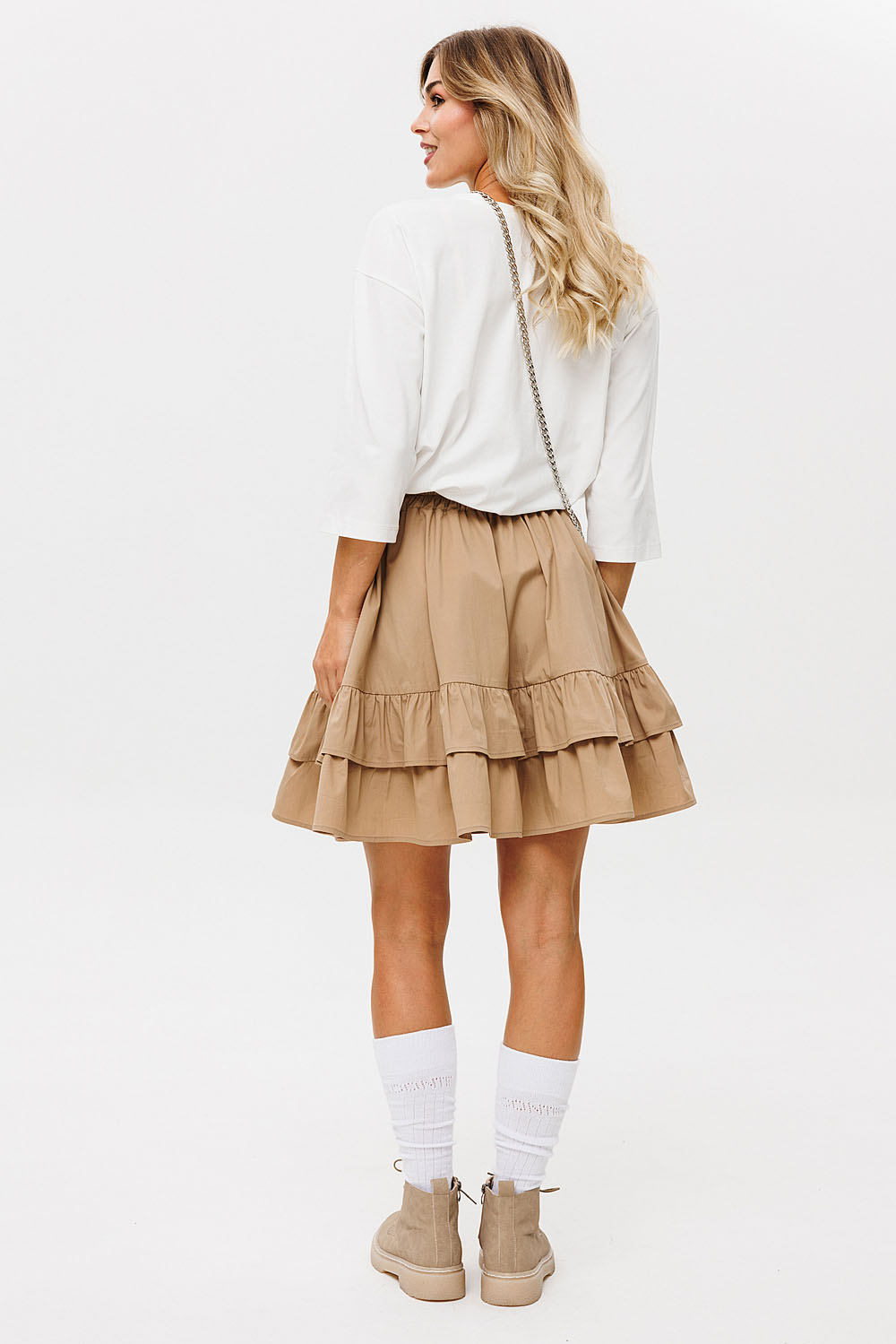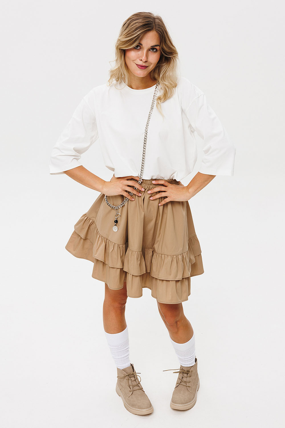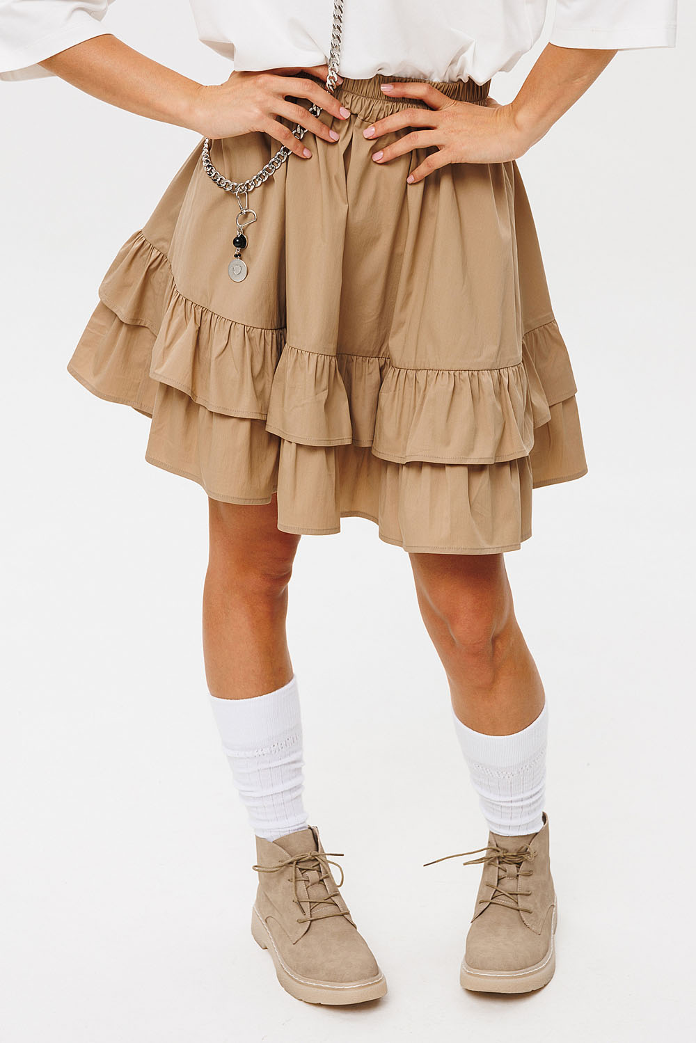 Юбка женская текстильная с воланами расширенная к низу. Верх юбки обработан поясом с резинкой.