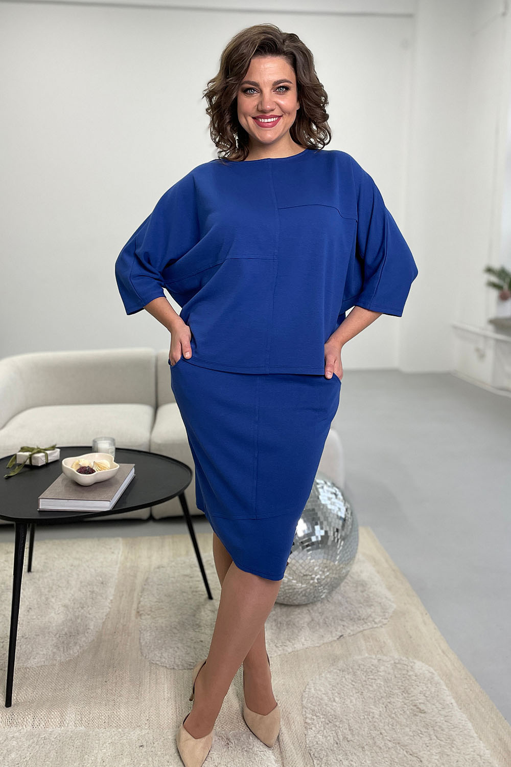 Длина изделия: по боковому шву с учетом пояса 59±1 см, ОБ (52р): 114 см, ОТ (52р): 80 см (резинка), 96 см (в растянутом состоянии)